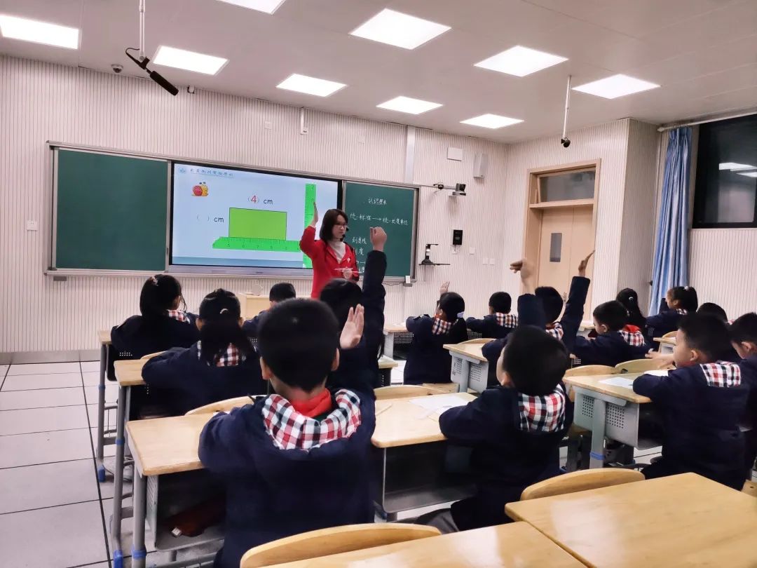成都武侯外國語學校的曾玉老師也為孩子們帶來了一堂輕松愉悅的展示課:《課桌有多長——厘米的認識》。