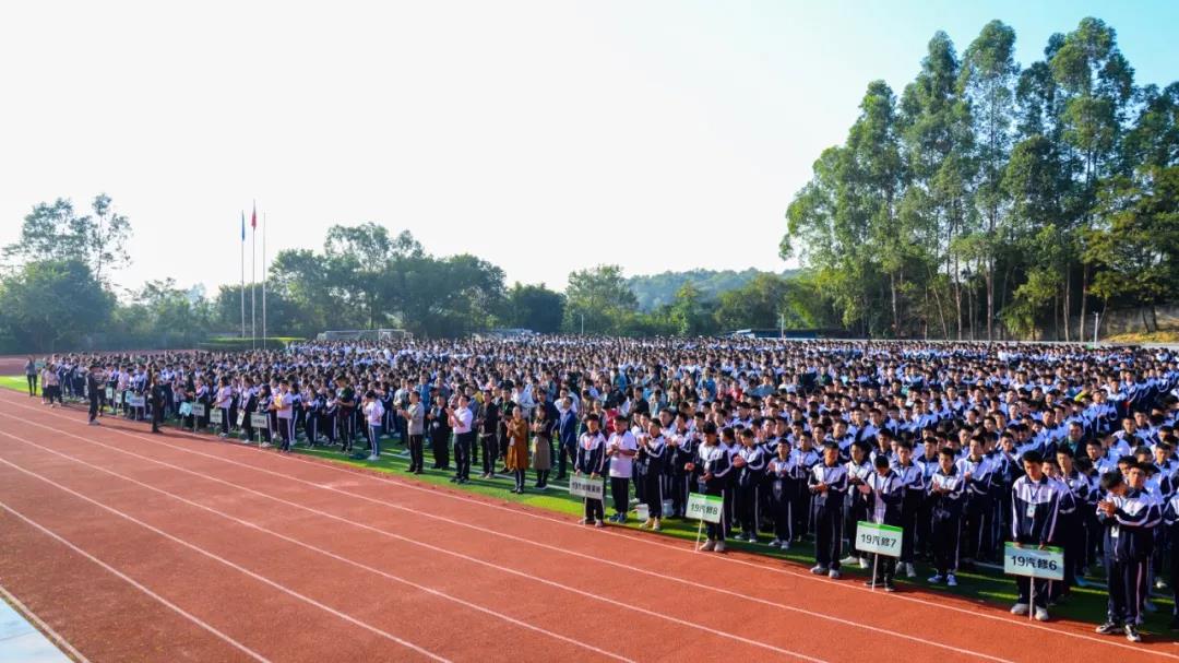 11月11日,第12周升旗儀式如期舉行,七千余名師生有序聚集西區足球場,鮮紅的國旗隨著和沐的旭日冉冉升起,全體行注目禮。