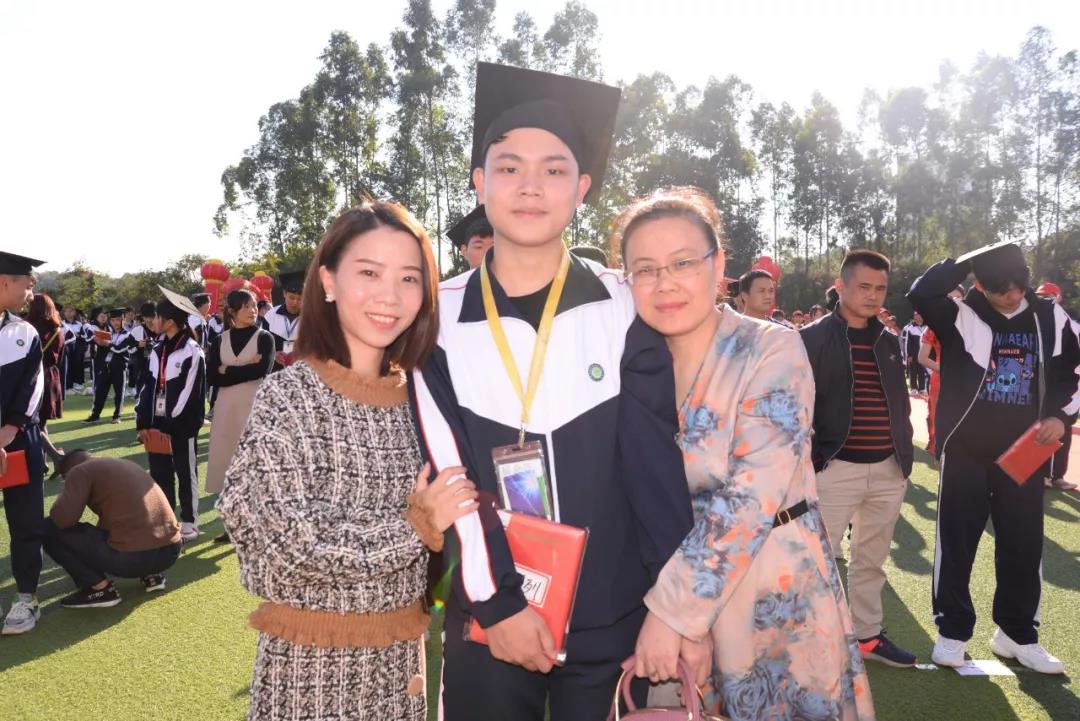 “孩子,首先你要學會感恩。感恩你們的父母,感恩你們的老師……勇敢地面對困難,堅定地走出每一步……”18電商9班黃慶成的家長將三句話,七個字“感恩”、“勇敢”、“正能量”,代表全體家長寄語并祝愿孩子們,未來擁有一個快樂且夢想成真的美好人生。