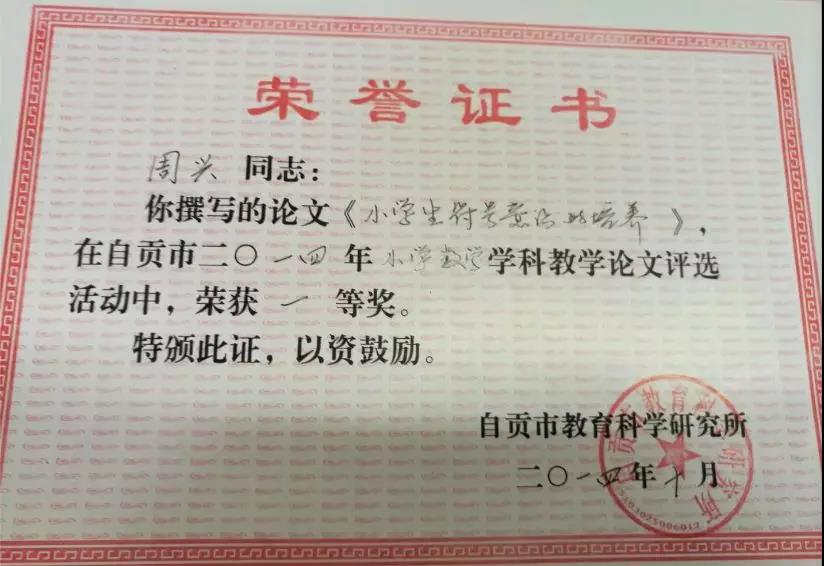 高級教師,自貢市名教師,市、縣首個小學數學名師工作室成員。獲市骨干教師優質課競賽特等獎、市說課比賽一等獎。