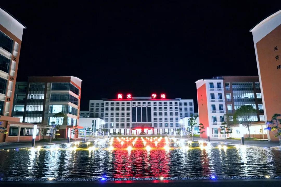 走進衡實的大門,映入眼簾的則是一個巨大的噴泉,噴泉雖不高但卻整整齊齊。噴泉旁邊一座座教學樓上都有激勵學子們努力學習的名言警句,我頓時感到自己被濃厚的學習氛圍團團包裹著。