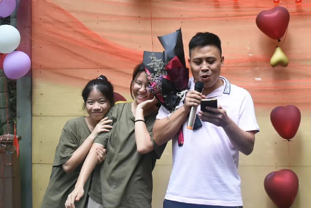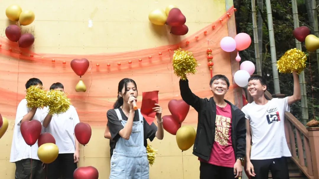 吃飽喝足便是節目表演環節,老師的《日不落》活躍氣氛,現場成為打歌舞臺,輕快酷炫的rap讓大家飽享耳福,搞笑有趣的廣西版《有何不可》讓大家捧腹大笑,熟悉的歌謠使得在底下的觀眾情不自禁地跟唱起來,小伙伴們組成一個個小團隊,在舞臺散發著獨具特色的光芒,歌聲夾著尖叫聲,打call聲響徹丫山,送花合影讓我們更親密了,每個人的臉上都洋溢著笑容,負責接送我們的劉老師最后也按捺不住了,唱起了動聽的經典歌曲《濤聲依舊》和《橋邊姑娘》。