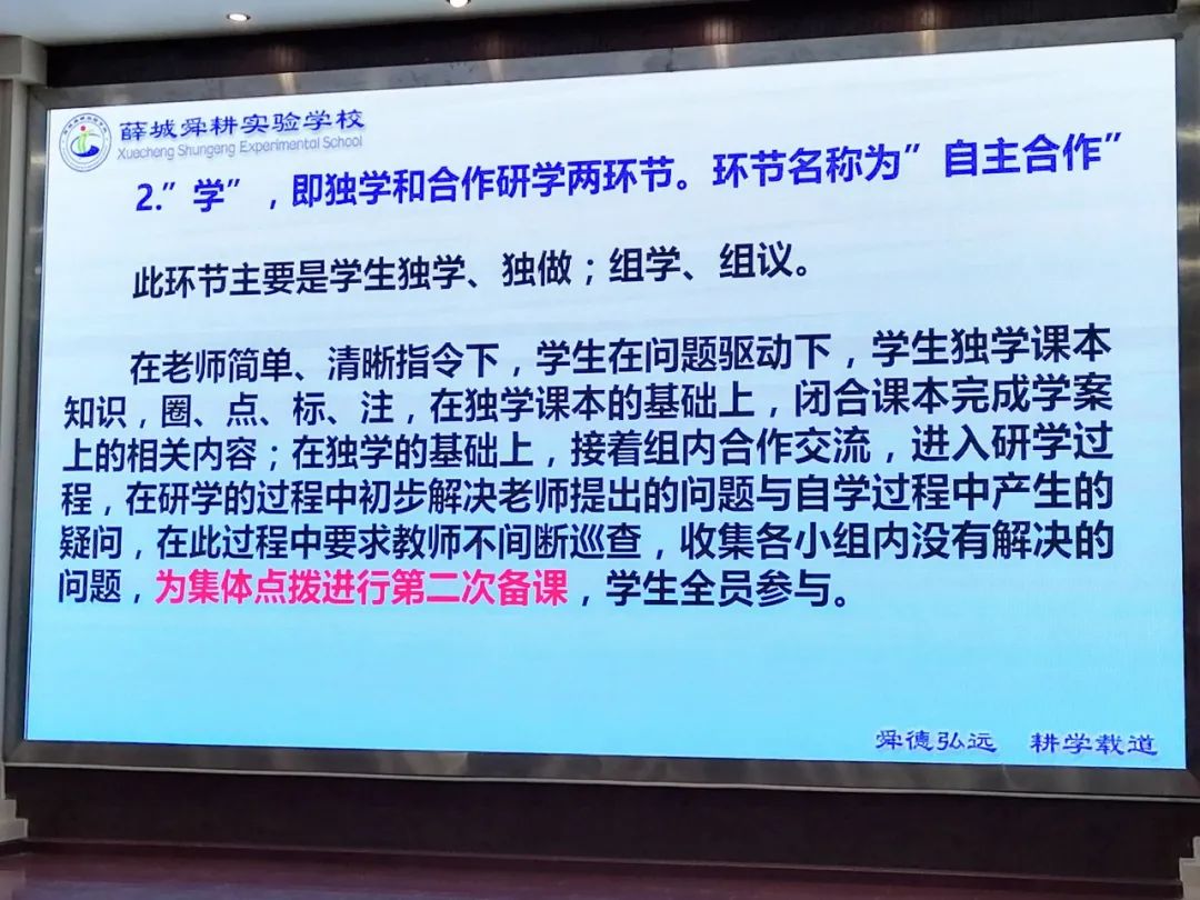 教育專家和大咖們所例舉的成功典范都有一個共性的地方:把時間還給孩子,孩子的自主學習才能提高學習效率。我們可以借鑒的是:課堂和課后把時間給孩子,在教師精心備課安排好任務,精準引導下,充分發揮孩子的主觀能動性去學,改被動學習為主動學習。這個過程對于我們習慣了灌輸式和填鴨式教學的老師來說,會是一個非常痛苦的過程,但是課堂有改變,學校才會改變。課堂模式也不是所有課型都按各個名校都已經驗證成功的“導、思、議、展、評、檢、用”高效6加1課堂教學七環節的模式,可以結合我校實際可以先在新授課中試行,從一種到復習課和講評課、習題課等多種課型逐步過度推行,還可以融入自己的特色,兩者相結合進行優化。山東省棗莊市薛城舜耕實驗學校黃飛校長的報告貼近實際,可操作性強。為了真正實現高效課堂,提出:導,即激情導入和目標導學。學,即獨學和合作研學兩環節。展,即展示學習成果或困惑。評,即點評精講,歸納總結。練‘即當堂訓練。測,即總結與當堂檢測。這就是一個很接地氣的特色模式。