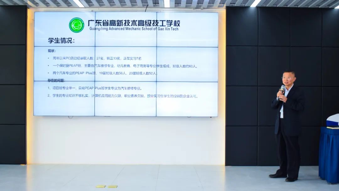 PEAP項目廣東高新負責(zé)人王則如老師從學(xué)生培養(yǎng)、教師隊伍、實訓(xùn)建設(shè)、項目管理評估等方面,作出項目匯報: